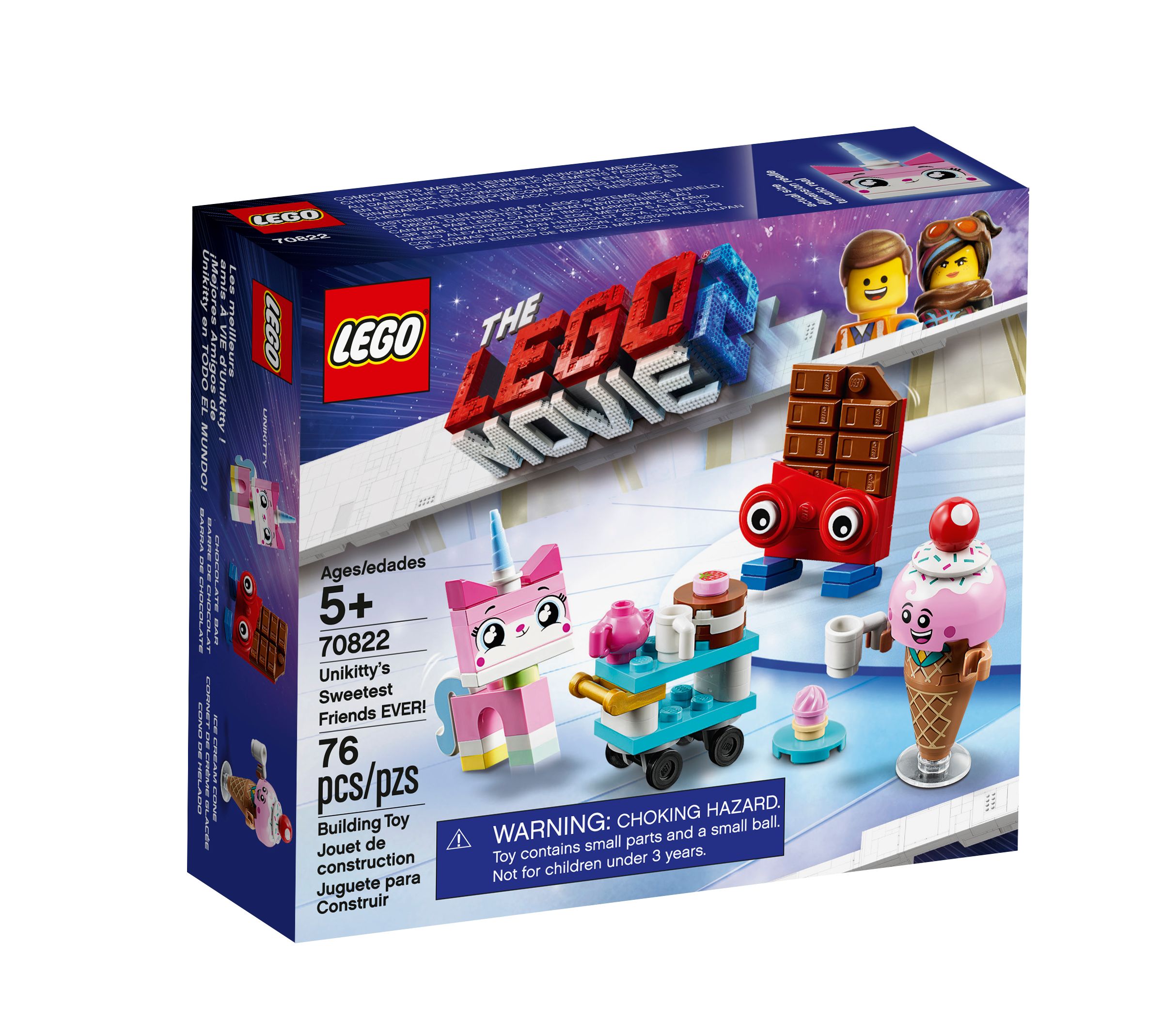 • Questo set Unikitty LEGO® contiene 3 personaggi di THE LEGO® MOVIE 2™ in mattoncini: Unikitty, con due espressioni facciali intercambiabili, Cono gelato e Cioccolateria, più un carrello da tè.